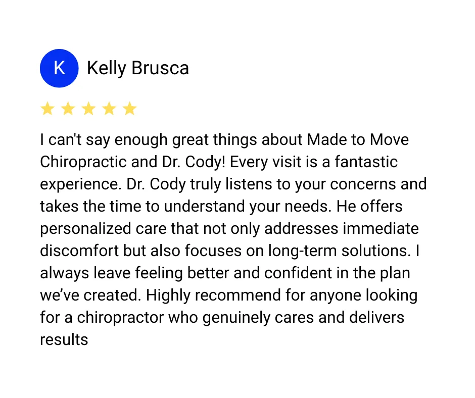 We’ve got you covered. At Made to Move, we accept most major health insurances and offer flexible, affordable care plans tailored to fit your specific needs. Whether you’re using insurance or paying out of pocket, we’ll work with you to ensure you get the quality care you deserve—without breaking the bank. Your health always comes first, and we’ll go the extra mile to make sure it works for you.
